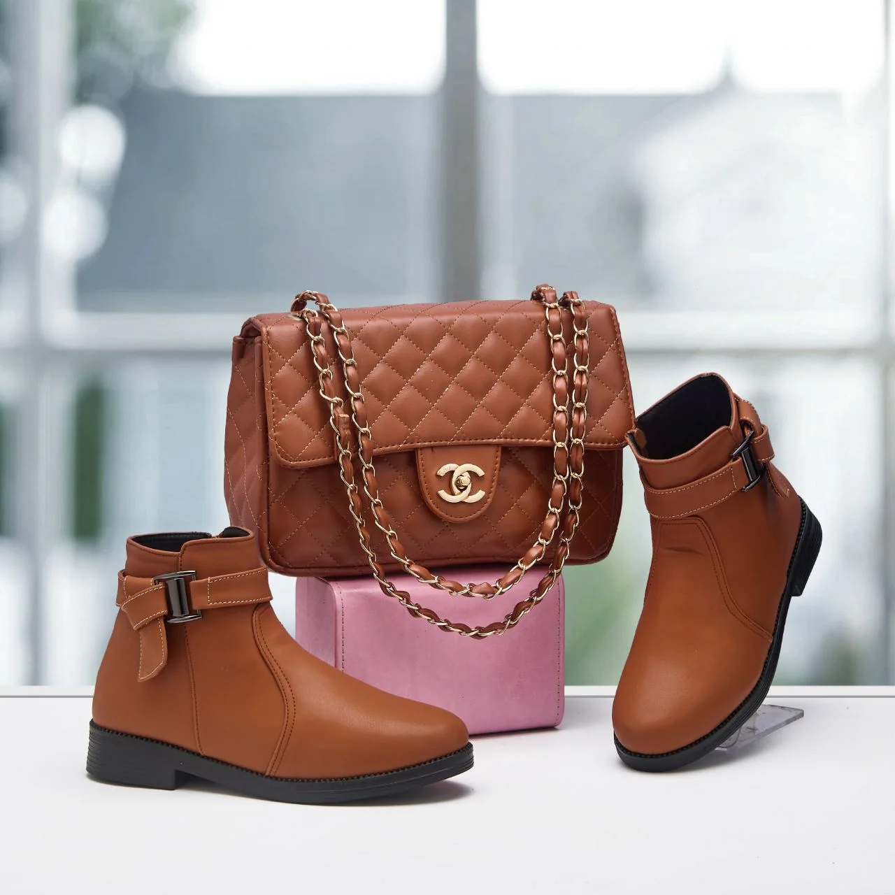 باك الأناقة الشتوية: بوت جلد كلاسيكي مع حقيبة مبطنة فاخرة
