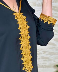 التميز الحقيقي يكمن في تفاصيل طرزة المعلم التي تزين الصدر والكمام. سواء اخترتِ زواقة المربعة التقليدية، أو التصاميم الدقيقة، أو الستايل الهادئ “لون فاللون”، فإنك تحصلين على قطعة فنية حقيقية. هذا العمل اليدوي الدقيق يضيف لمسة ملكية تجعل جلابة مغربية عصرية مناسبة للسهرات الرمضانية والمناسبات الخاصة.