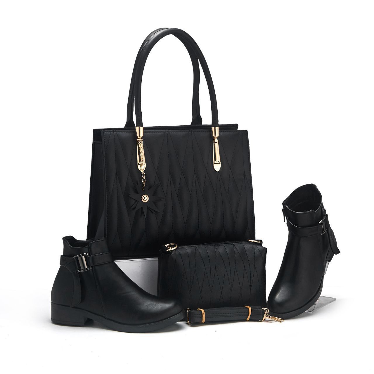 طقم الشتاء الملكي 3 في 1: حذاء بوت عصري مع حقيبة يد كبيرة وحقيبة ميني