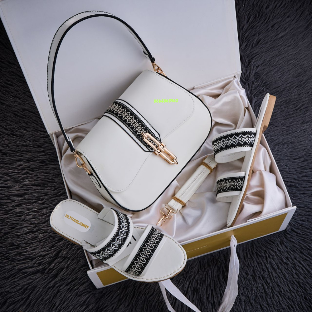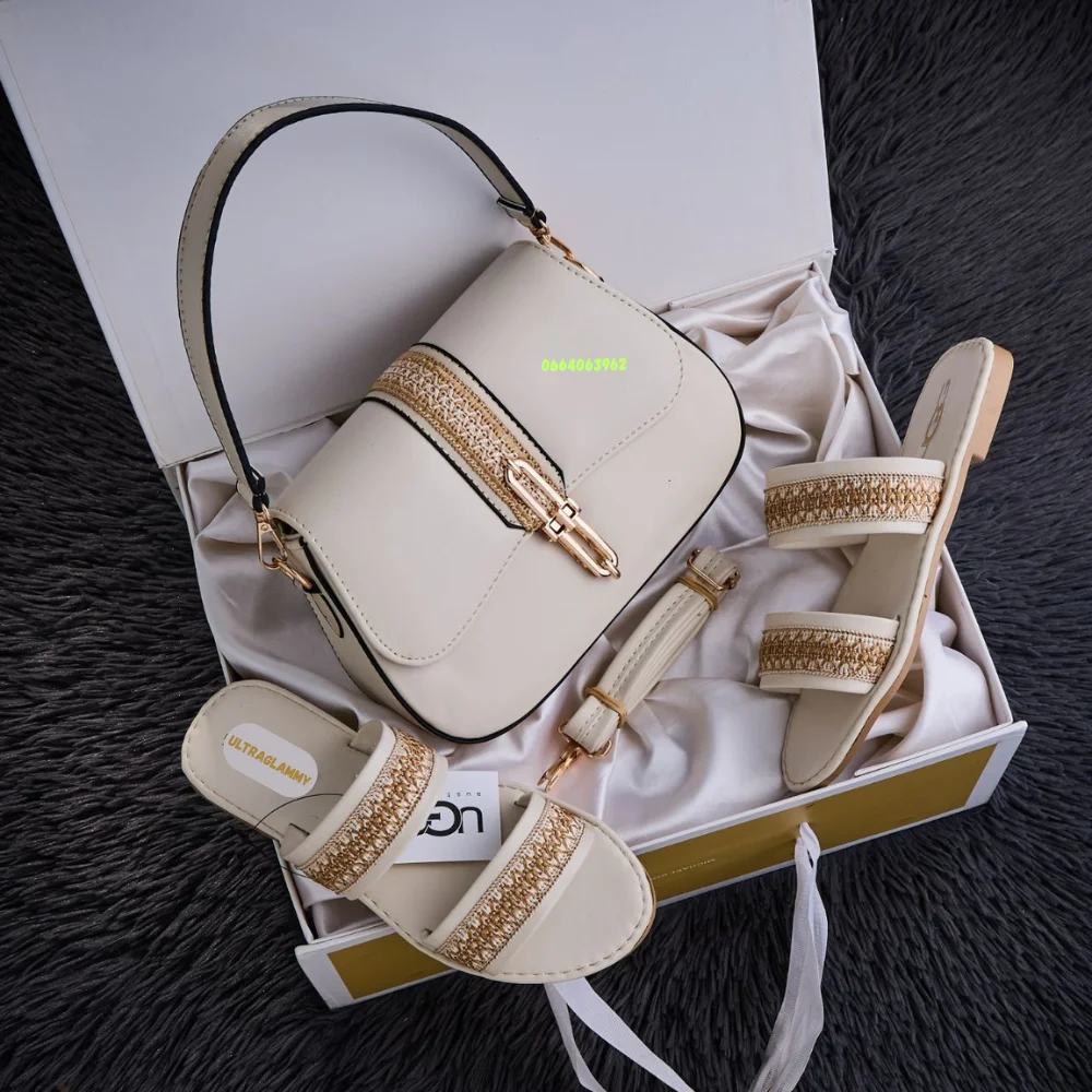 التناغم البصري الكامل: اللون والخامة والتطريز موحد بين الحقيبة والصندالة، مما يمنحكِ وحدة جمالية جذابة تلفت الأنظار وتوفر عليكِ عناء البحث عن تنسيقات إضافية.