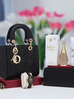 تألقي بإطلالة متكاملة مع باك هدايا من 5 قطع يجمع بين الأناقة والجمال، بما في ذلك حقيبة عصرية، محفظة، ساعة يد، إسوارة، وعطر فاخر.